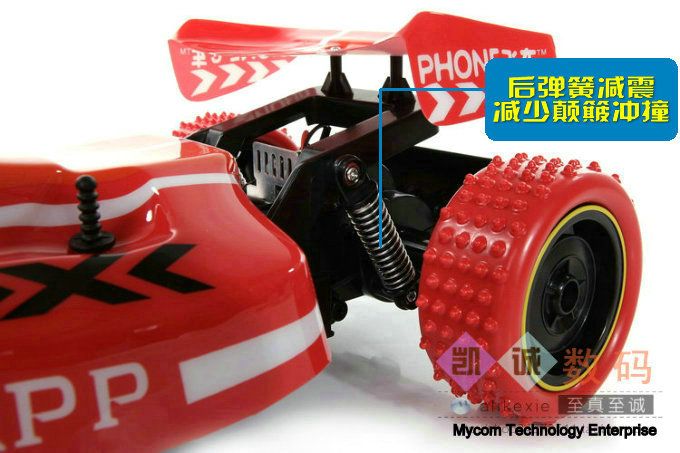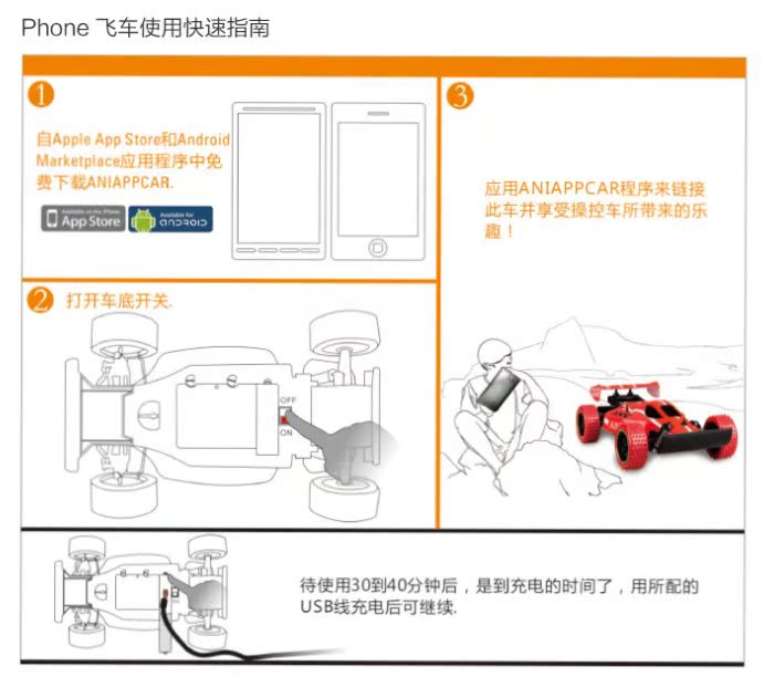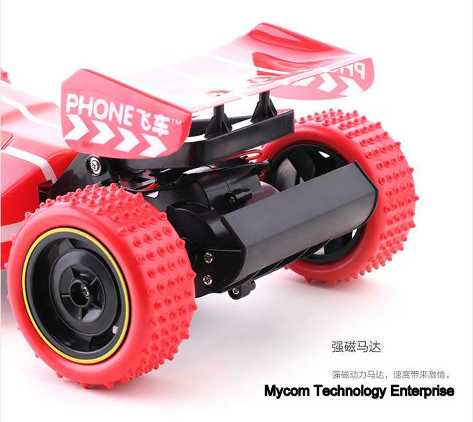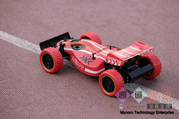 绝对一般玩具可比! phone飞车为通过wifi控制的玩具车,无需额外的遥控器,只需用你的iphone、itouch、ipad(ios3.2以上)、安卓手机(os2.1以上)来控制即可。 飞车打开,发出wifi无线信号,你的手机或平板来接收,两点之间的点对点无线连接(无需宽带网络的支持,有飞车有手机或平板即可),实现比一般玩具车更远距离的遥控体验。 高速电机,给您带来极速体验;粗大的赛车轮子,一般草地和沙滩都能应付;四轮弹簧减震,前后的防撞护板,让你玩得爽,用得安全!