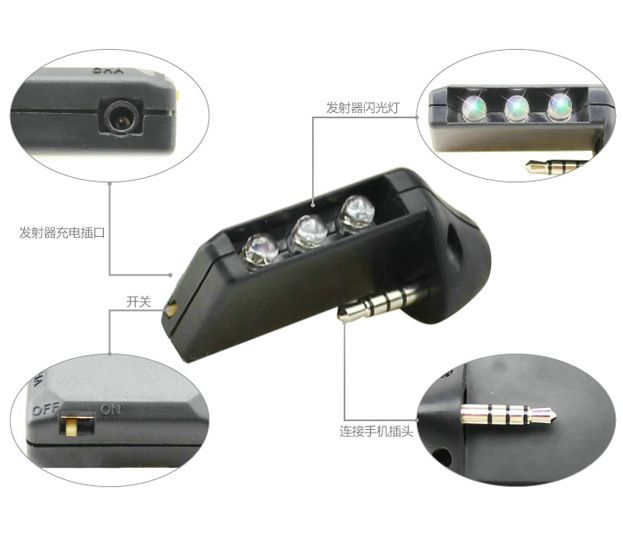 3、将发射器插在iPhone耳机接口上,并把iPhone音量调至最大(必须)