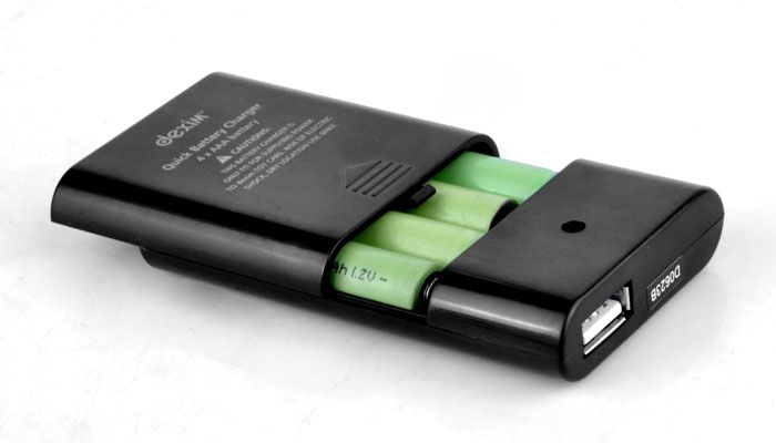 ·打开充电电池盒盖,按正确极性装入4粒"AAA"电池并盖上电池盖(电 池 另 售)。