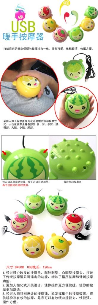 USB卡通水果暖手按摩器 保暖加消除疲劳2合1