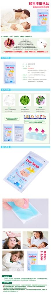 5.婴幼儿专门.有对皮肤无害的保水粘胶,即使孩子睡觉运动都不会脱落,可持续冷却8-10个小时,如果放冰箱冷藏室,效果更好,但是请不要放入冷冻室.本品非药物,起到冷却短期降温的作用,孩子生病还需要医生确诊..