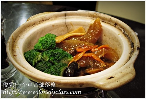 总所周知,广东人最爱吃海味,怎么能少得了这一煲海味煲呢?老板说,现在的年轻人似乎对海味没什么兴趣,很少吃海参,鲍鱼之类的。我说啊,不如告诉他们(尤其是女生),海参可有着很高的胶原蛋白,对皮肤好,有美容疗效,你看那些年轻人吃不吃?哈哈!