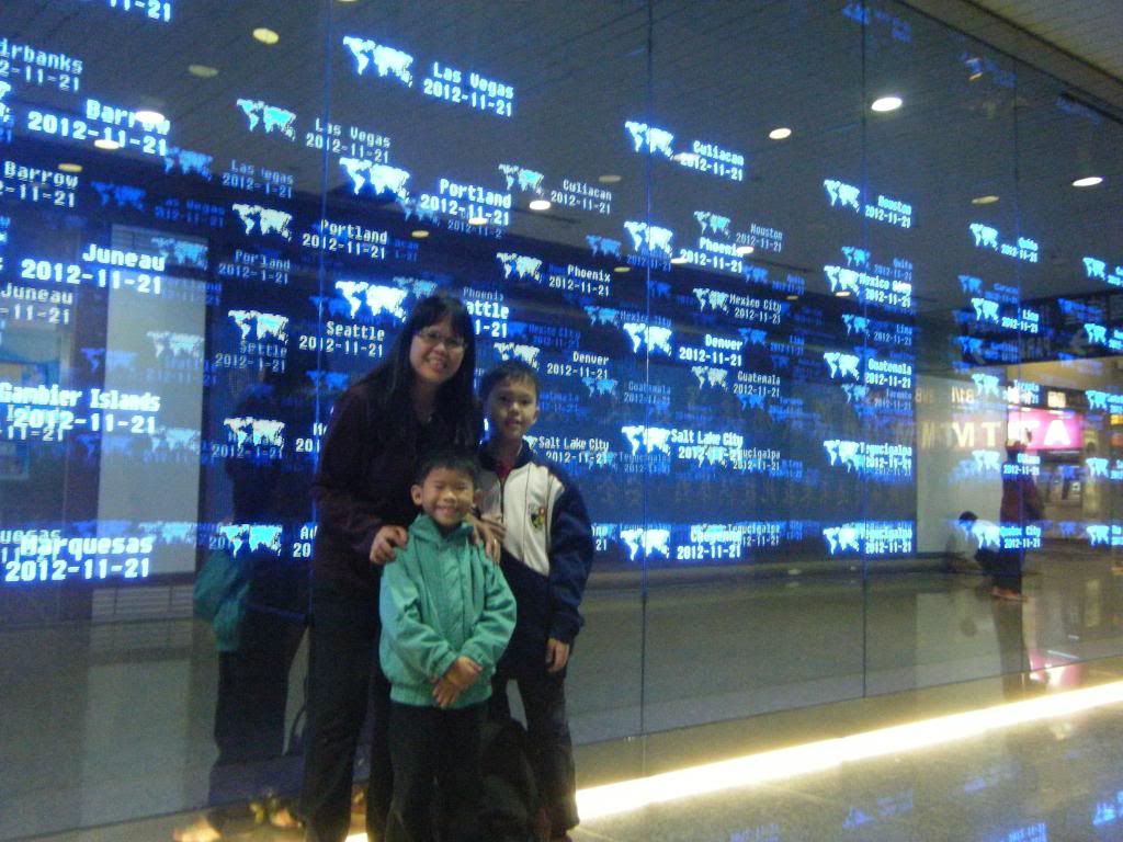 到达时间是十点三十分。下机后,走好长的一条通道去提取行李。经过候机室,隔着一层玻璃,竟然看见正等着要飞回吉隆坡的两位同事。她们比划着下雨的手势,意味着她们那几天的行程都有雨为伴。我们立刻沉下心来,唉,扫兴也!