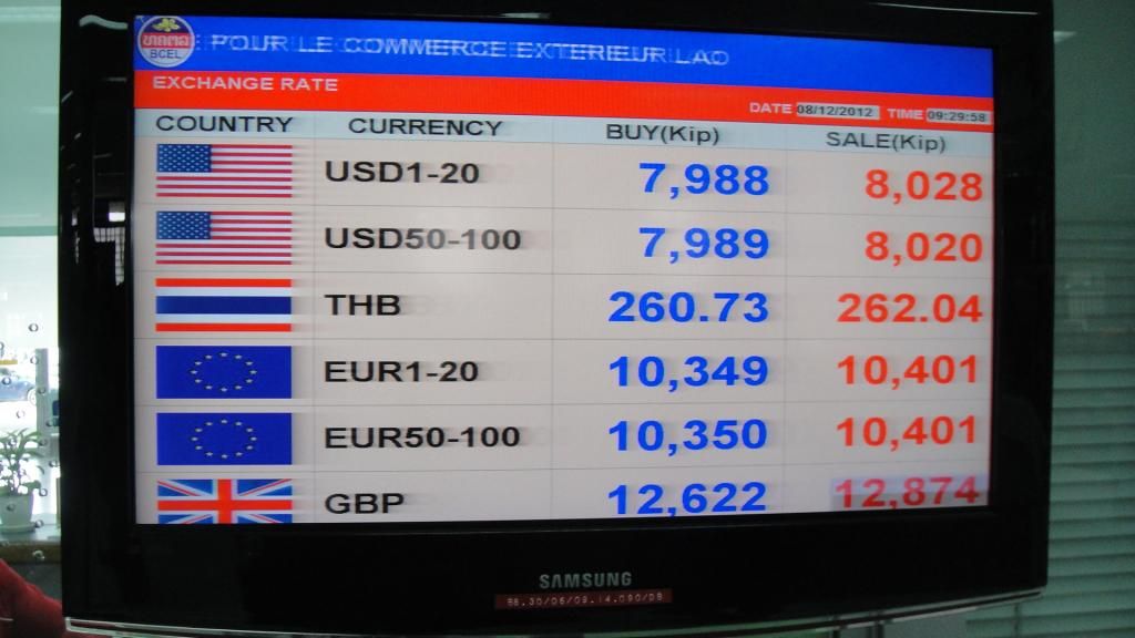 AA 准时起飞。抵达永珍机场才上午9.10。我们在机场的BCEL换了寮币(Kip)。USD 1 兑换 7988。