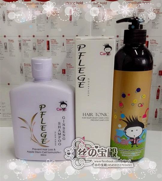 (科学研发科技,全马首创以苹果干细胞培植提取物配制而成的生发胶Bio-stem Cell具备再生能力细胞,能提供毛囊所需的营养成份,促进毛囊的水合作用,使毛囊重现活力.CARIC PFLEGE HAIR TONIC也含有人参,鼠尾草提取物,能抵消多余的角质层,皮脂层和皮屑,防止头皮发痒,强化及保护头皮健康.)