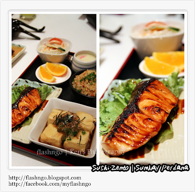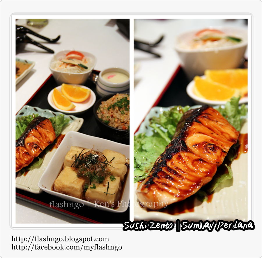 Shake Teriyaki To Agedashi Tofu Set - Grilled salmon with teriyaki sauce & deep fried bean curd with tempura sauce set RM 36