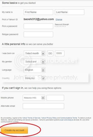 2. 玩家们进入了后就能填写资料,那么登入泡泡宝石就是使用这个Yahoo账号了。完成后就点击【Createmy Account】