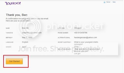 4.恭喜玩家们成功申请到Yahoo账号,之后点击【Get Started】,玩家们就有属于自己的Yahoo账号了