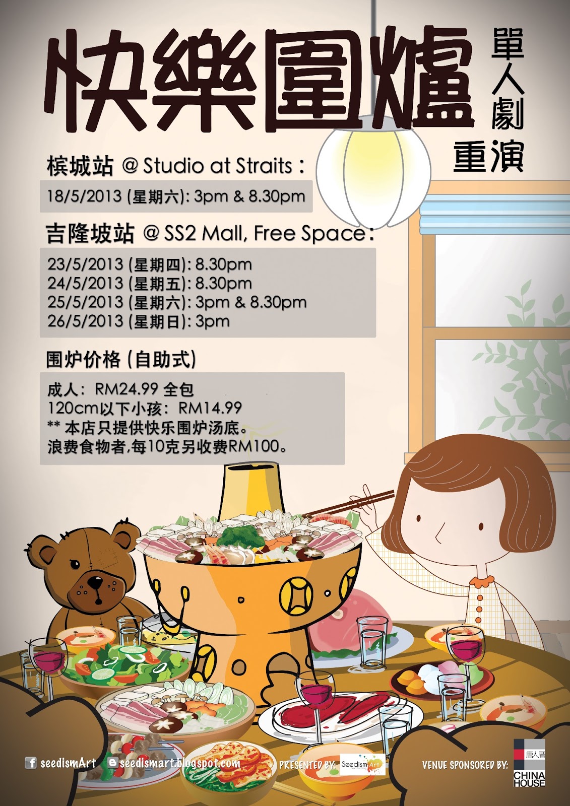 围炉是一个大马华裔不管晴天或雨天都爱的一种饮食文化,《快乐围炉》更是一部讲述马来西亚华裔家庭文化的一部单人剧。故事经由朱太太这位妈妈来带领我们一边围炉一边讲是非,从幼稚园到社区生活、百货公司到济公,所有好笑、好玩的都在这一锅。同时,围炉也寓意着团聚之意,一家人团聚,开开心心地,也就是母亲节送给母亲大人一份最好的礼物。这一个母亲节种子主艺把这一份最好的礼物献给我们的祖国-马来西亚,也献给天下所有我们所敬爱的母亲。想知道朱太太煮的是怎样的一锅东西呢?我们等你一起来开炉密探哦!!