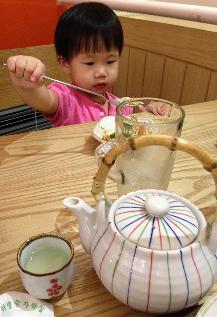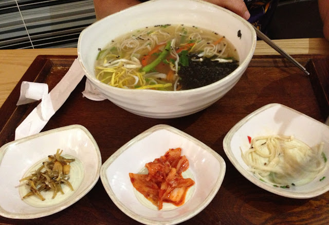 除了主餐,还附送了三个小菜 - 江鱼仔,泡菜和豆芽(只是妈妈吃掉了,放了面条给小童吃)