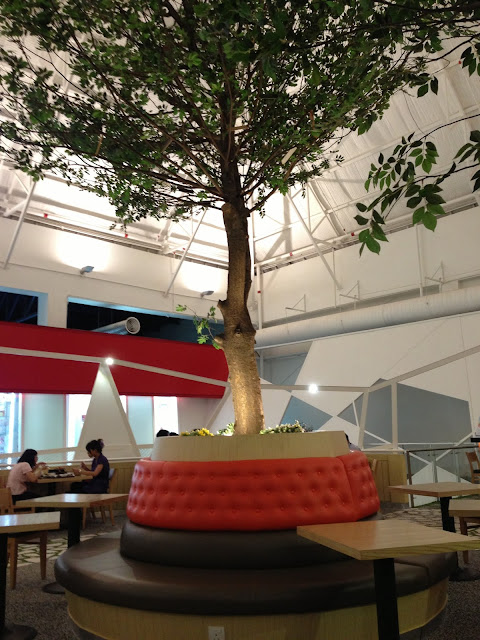 楼上的环境比较宽敞,中间还有一棵树(假的啦)呢。。