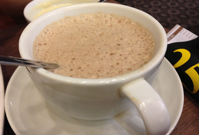 套餐还包括了汤(忌廉汤),水果(没拍到照,就两片小小片的西瓜,两片小小片的蜜瓜)和香岛丝袜奶茶