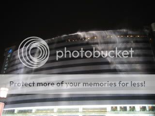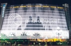 为什么叫“大瀑布”飯店?因为这里擁有上部寬72米、下部寬75米、落水高度達45米的大型人造瀑布,已列入大世界基尼斯紀錄。每天晚上8点半,酒店就会准时“放水”,酒店对面都已坐好要看瀑布的人群。