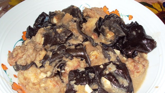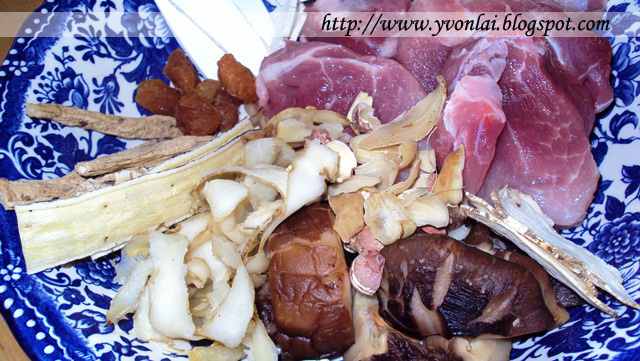 4) 把3大碗清水倒进瓦煲煮沸,把炸好的肉块连木耳放入,以中火煲20分钟。