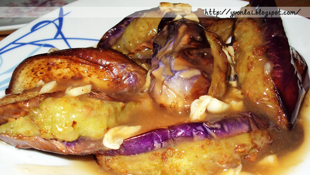 3)小火炸一炸有肉的酿矮瓜/茄子,过后大火煎(把油逼出来)。