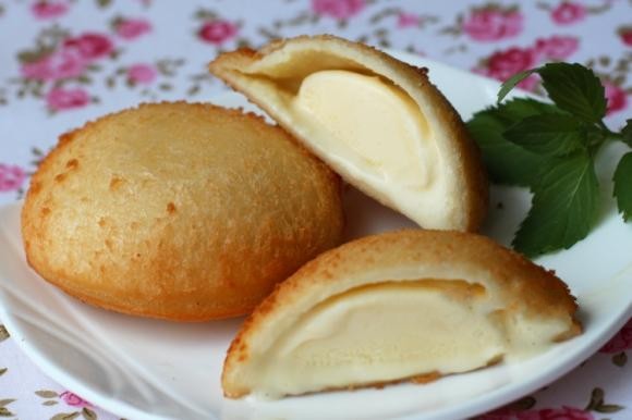酒店可以吃到油炸冰淇淋,原来我一直很好奇这个是怎么做出来的,遇热即化的冰淇淋怎么能放油里炸呢!于是网络搜寻了各种制作的方法,原来是用吐司片做出来的,其实一点都不难呢!主要是炸的时候要注意,大火炸,不要让冰淇淋在油里停留太长时间,不然冰淇淋就要化掉了。吐司片经油炸过松香酥脆,里边有半软的冰淇淋流出,别提有多美味了!
