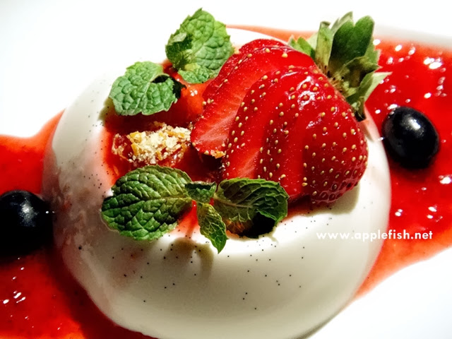 总的来说就是coconut jelly,放了些椰奶再搭上焦糖布丁和两片水果作装饰。这甜品的确润喉。