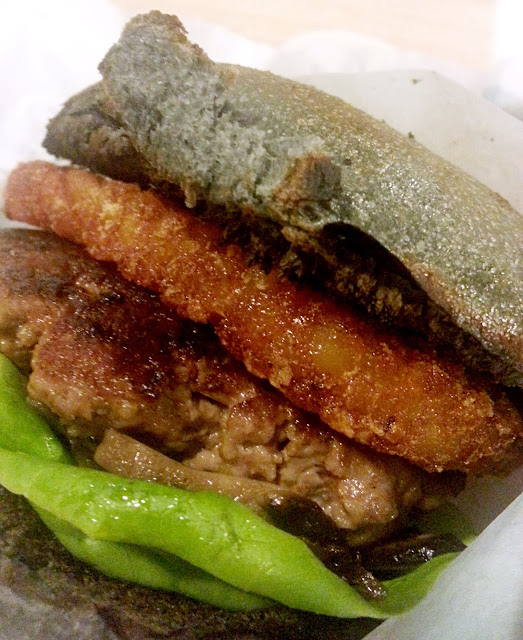 一直到了网友告诉我,myburger lab已经开了第二家分店在 oug,终于,上星期我们也跑去排队了。我们到的时候是晚上约9点,排了大概15分钟的队后我们点了两种汉堡,可惜另一个热门的口味-the hulk(牛肉饼,green salsa, 牛油果等的口味)已经卖完了