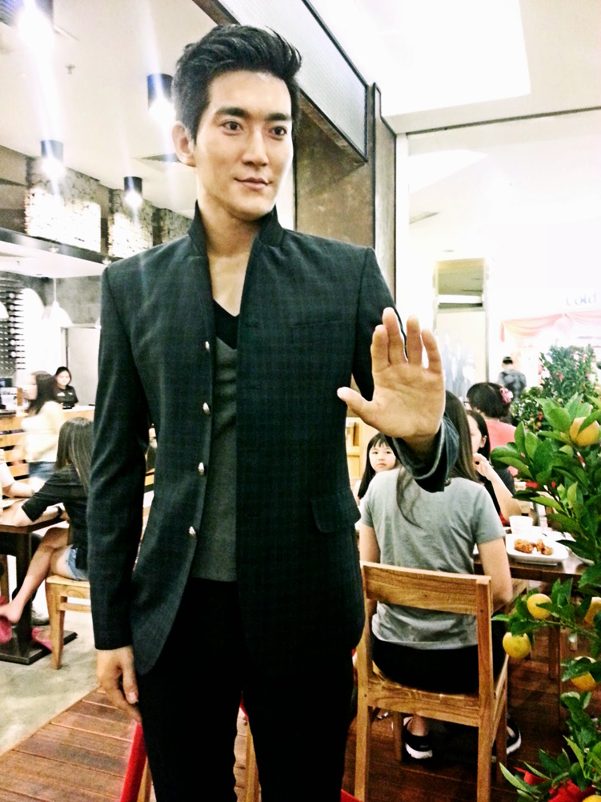 入口处还有一个真人大小的人像, 难道他就是SJ里的崔始源??嘻嘻, SJ的粉丝们想必一定会喜欢来这里用餐吧??