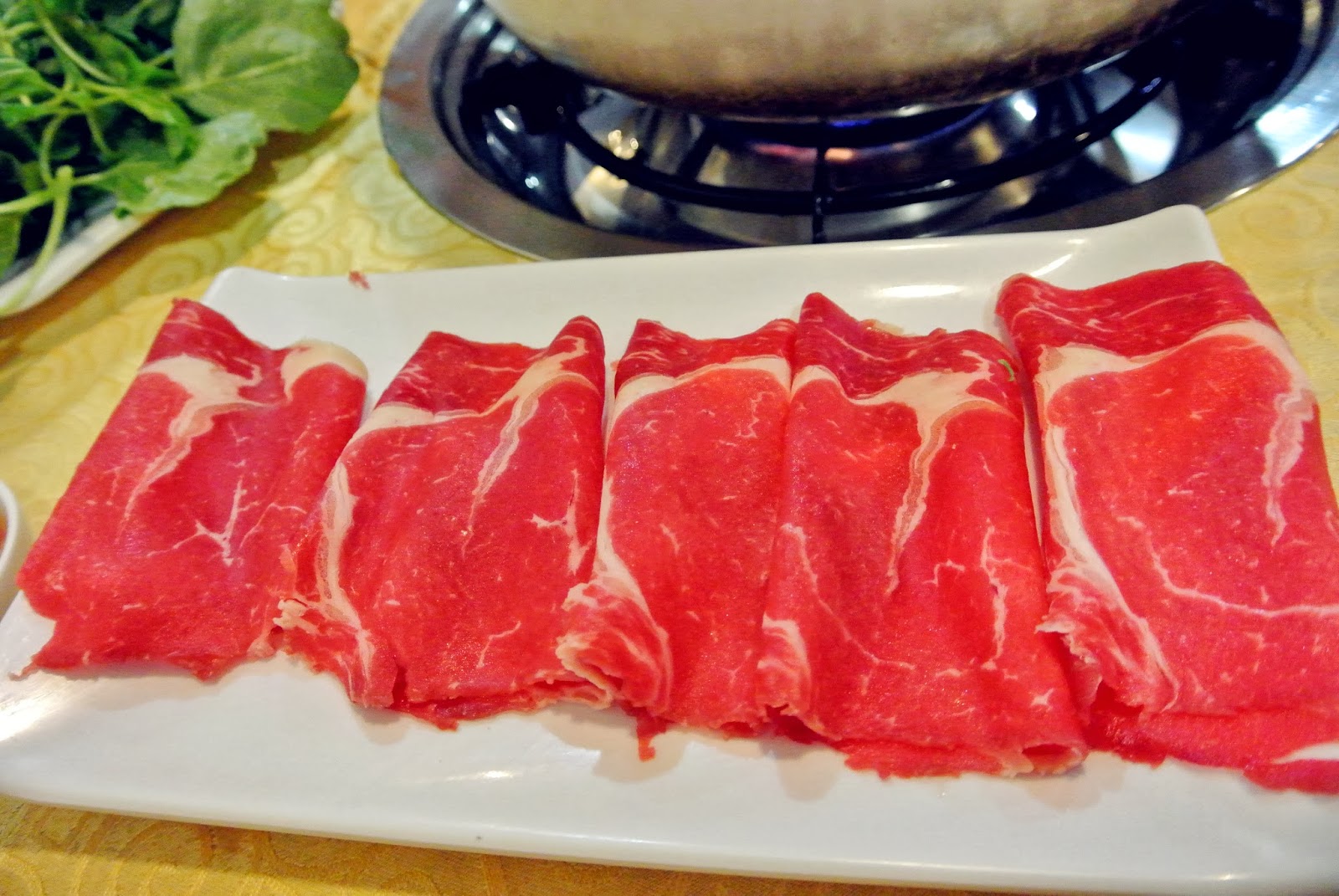接下来我不用多解释了,把材料们涮熟了就开吃吧!!我喜欢这里的爆浆牛丸, 新鲜的牛肉片与猪肉片, 配上南瓜甜味的粥底, 不错不错。