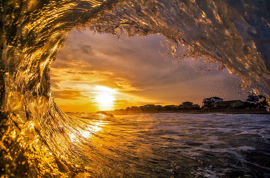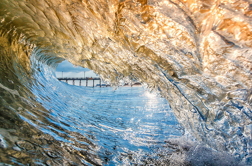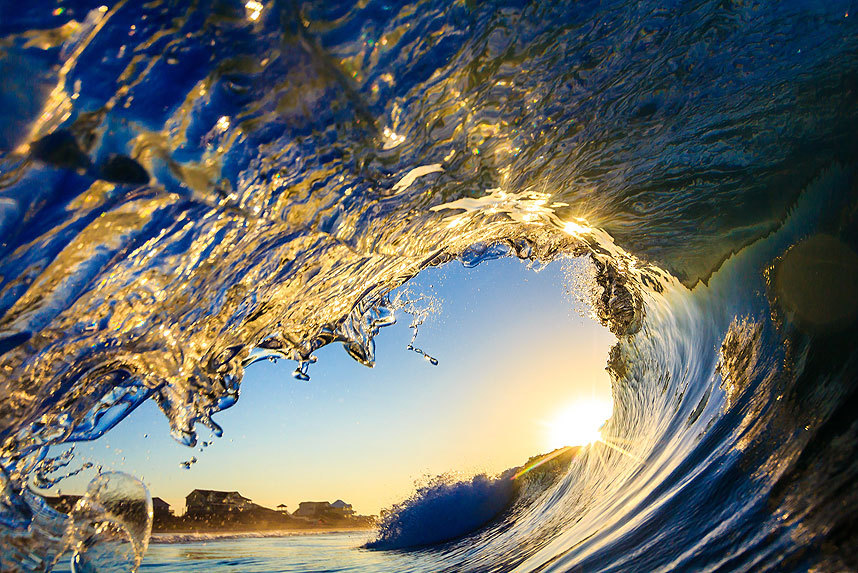 摄影师拍海浪翻滚唯美瞬间:阳光照射五彩斑斓