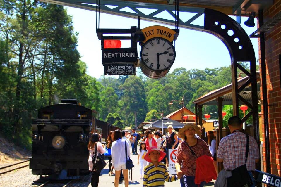 接下来跟着GPS走,很顺利的我们就到达了Puffing Billy. 来这里主要就是为了搭乘那古老的蒸汽火车。我们到达时刚好来得及搭乘10.30am开动的那一班列车。大家记得如果来搭蒸汽火车一定要坐靠右边的位置哦!靠右边才有美美的景色看。 还有就是尽量坐在最尾端,这样除了不会被火车喷出来的浓烟弄到脸黑黑之外,还能拍到整架列车的面貌。 精致的火车头。 经典的一幕,火车开动不久后就到了,车长都会提示哦! 发现在那里工作的员工全部都是老爷爷居多!他们和这列火车这些车站,真的很相配有感觉。 到达Lakeside站了,在这里悠闲的逛逛,等待12.30pm的火车。 内部引擎。 下一趟前往lakeside的火车时间。