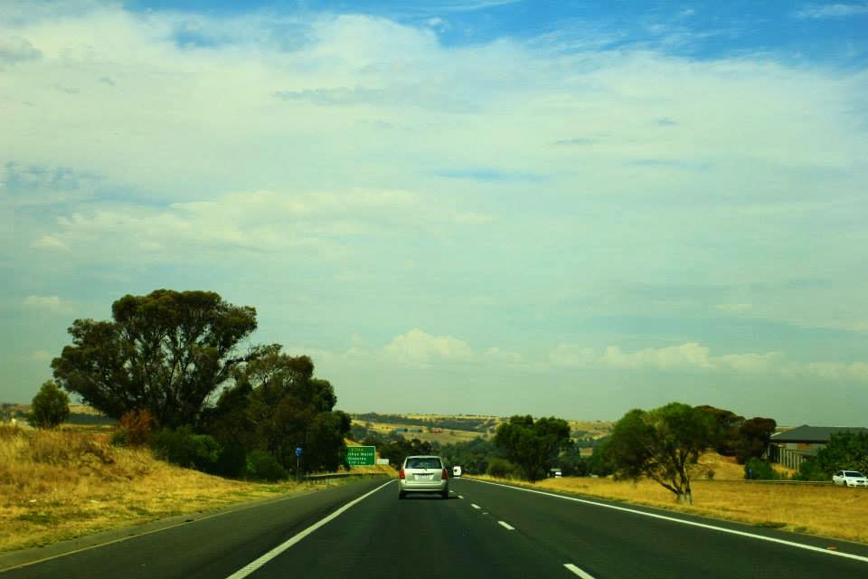 第二天: Melbourne Airport >> Puffing Billy >> Geelong (Rippleside Park Motor Inn) 好吧!出发咯! 拿了车后,我们第一站要去的就是Puffing Billy了。 * Route M3 * 65.1km (1 hour 10 mins) 途中我们到了一家油站买矿泉水,那个价格是超吓人的,一瓶1L的矿泉水要价是AUD5啊!救命啊~人生第一次喝那么贵的水。 话说他们都很遵从交通规则,很少看到有人会超速驾驶。 当路牌显示时速100时,大家都只驶到100而已,就算是高速公路上的fast lane也一样。 当突然显示时速60时,大家也很自然的就放慢速度下来,太令人敬佩了! 而且他们都好有礼让精神,当你要驶过去另一条lane时,大家都会礼让,和马来西亚天差之别! 沿途看到的风景。