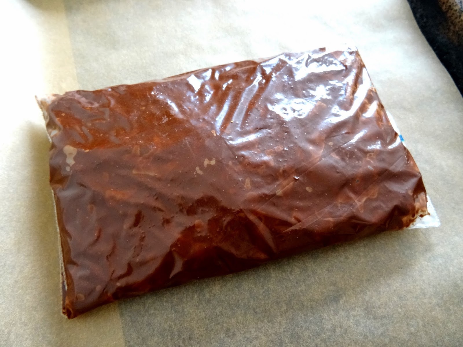 5. 把混合好的(4)放回保鮮袋,然後輕輕的壓成長方形,厚薄可按個人喜好而定。