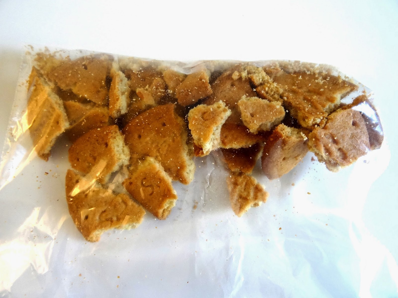 2. 把消化餅放入保鮮袋中壓成小塊。請注意不宜弄得太碎,否則會沒有吃餅干的口感。