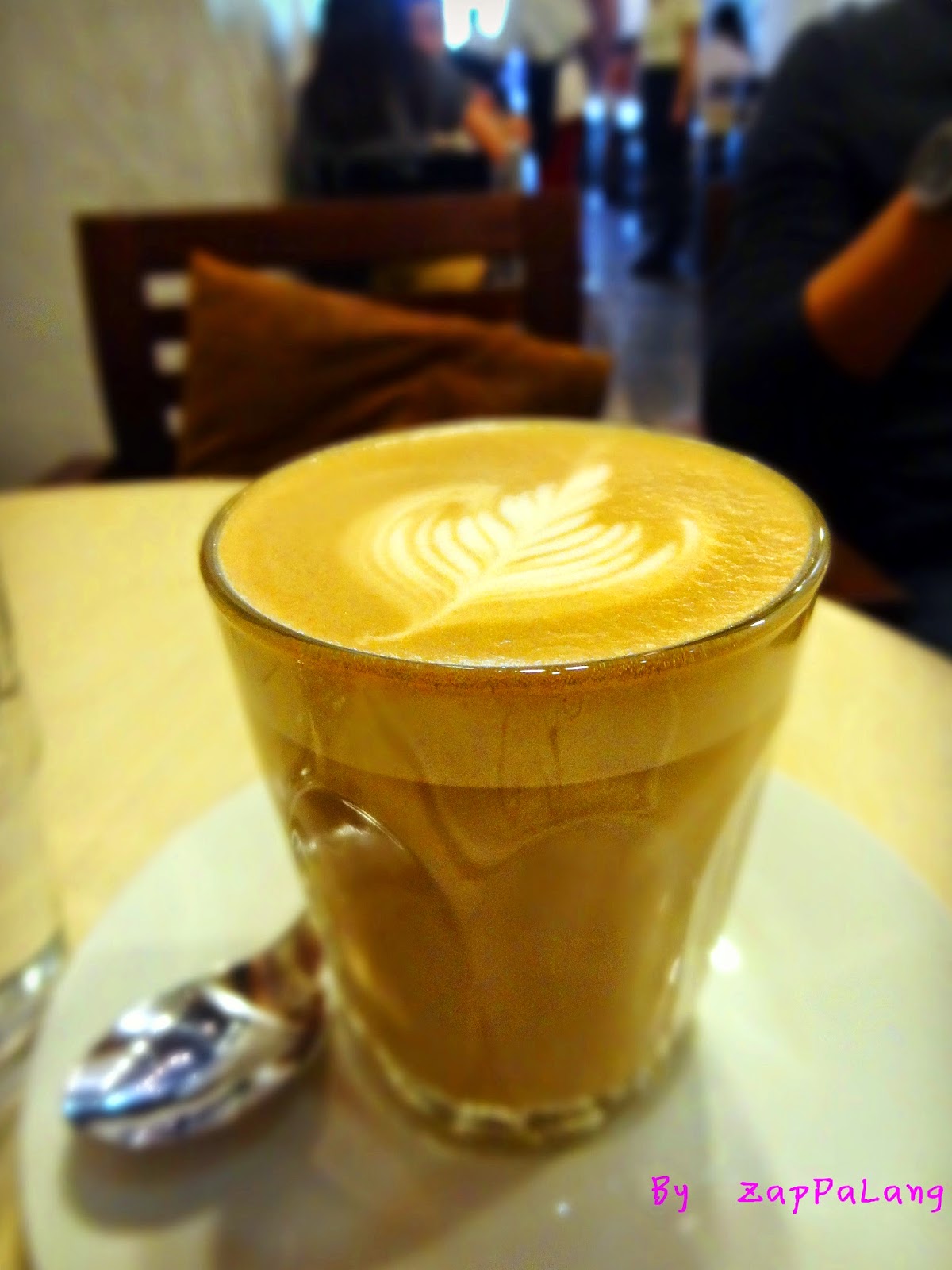 每天的下午三点至七点,这里都有提供下午茶套餐,一片蛋糕再加饮料的价位介于 RM12-14 之间,还算公道。我点了一杯热拿铁,虽然只是简单的拉花图案,但是已经足以满足了我没在墨尔本喝到拉花咖啡的遗憾。