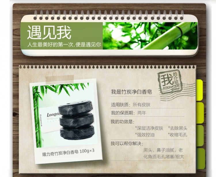 隆力奇竹碳净白香皂添加了天然竹碳,具有良好的吸附能力,能够有效洗净肌肤中易引发青春痘的过多油脂及污垢,帮助预防粉刺及青春痘的形成,更添加了多种滋养成分,保湿性好,使肌肤清爽柔滑。
