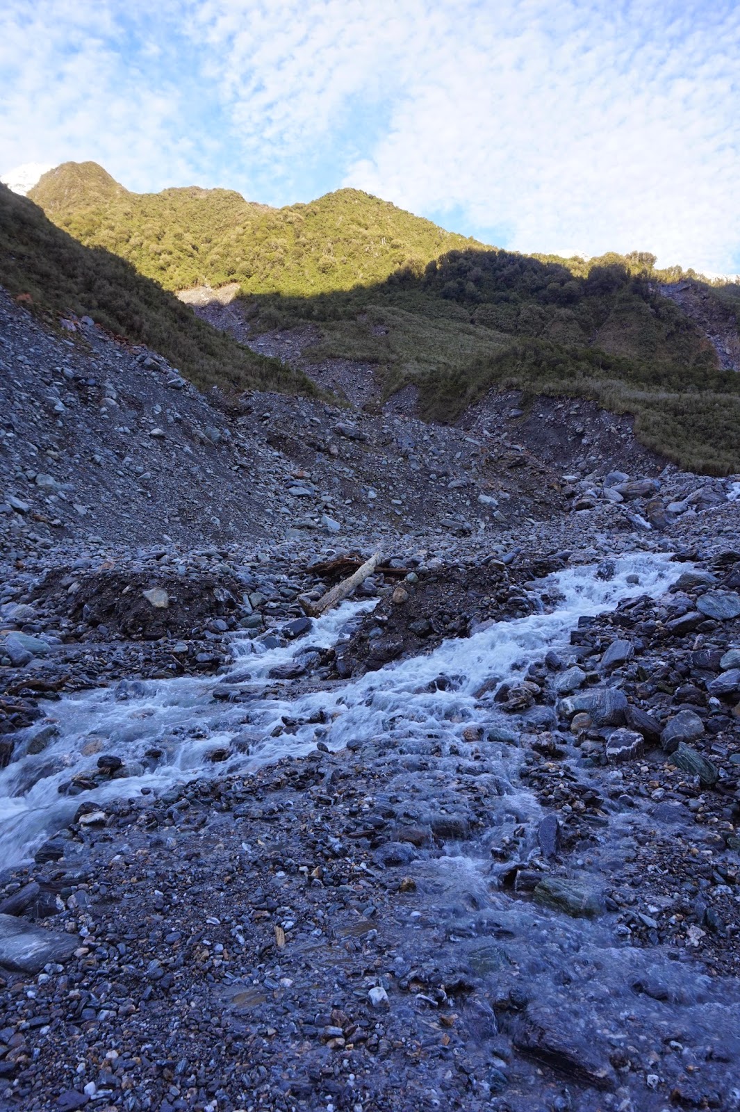Fox Glacier guilding 的店就在主要公路旁,很快的我们就找到了。我们订的团时间是900am,这个时间段应该是额外加出来的。网上和店里标明的时间其实是830am,所以很开心的是我们这多余的顾客拥有了专属的导游哈哈。听导游说830am的团有12个人之多哦。 确定人数后,就会到更衣室穿上额外的保暖行装。这之后搭上小巴,私人旅行团就出发咯!在车上导游就会跟我们解释冰川的历史背景。