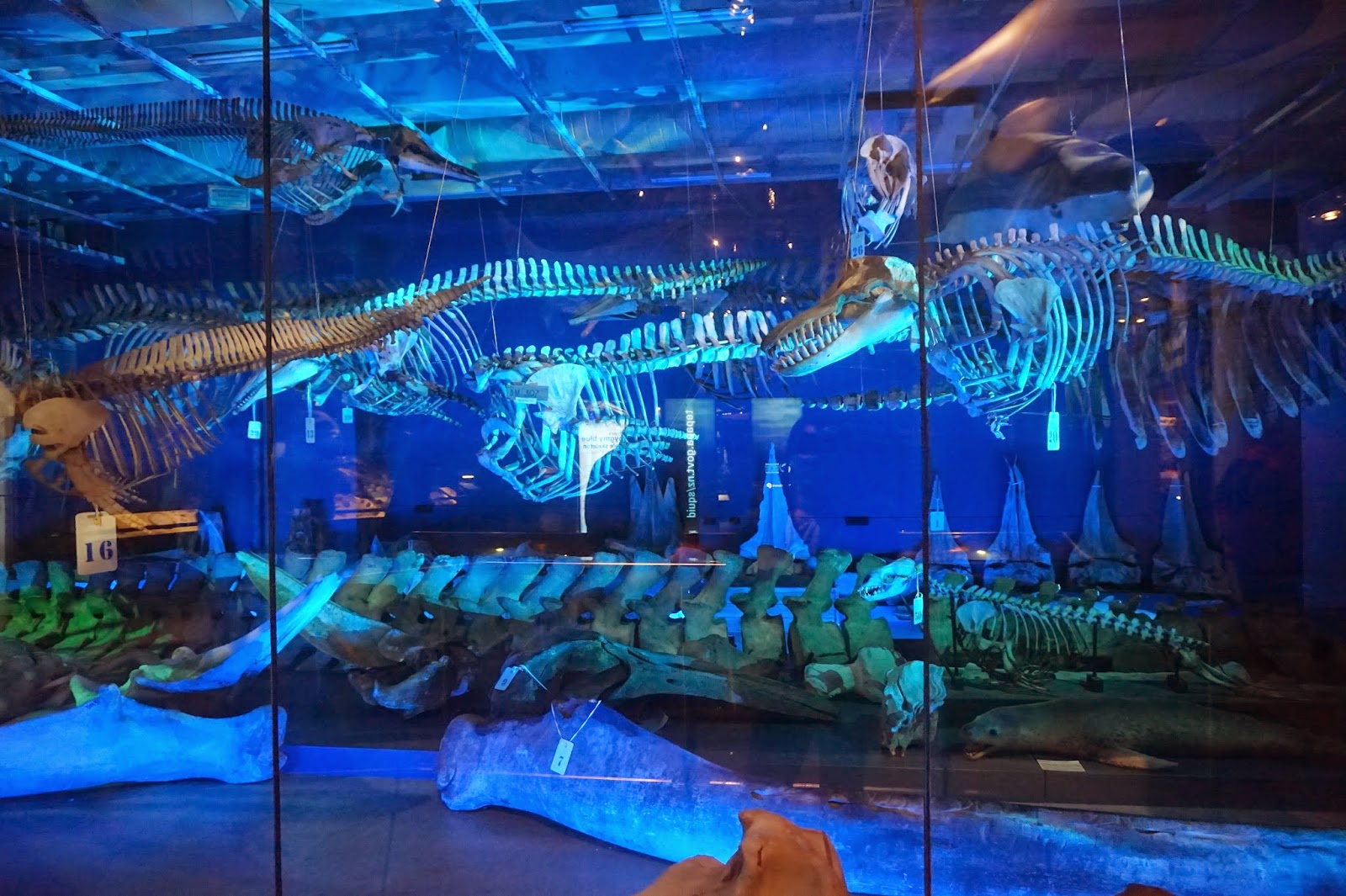 博物馆海洋生物区有一个抹香鲸的骨头标本,是不是很壮观呢?下面还有一个更惊人的标本。