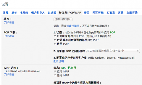 进入设置界面后,点击“转发 和 POP/IMAP”标签: