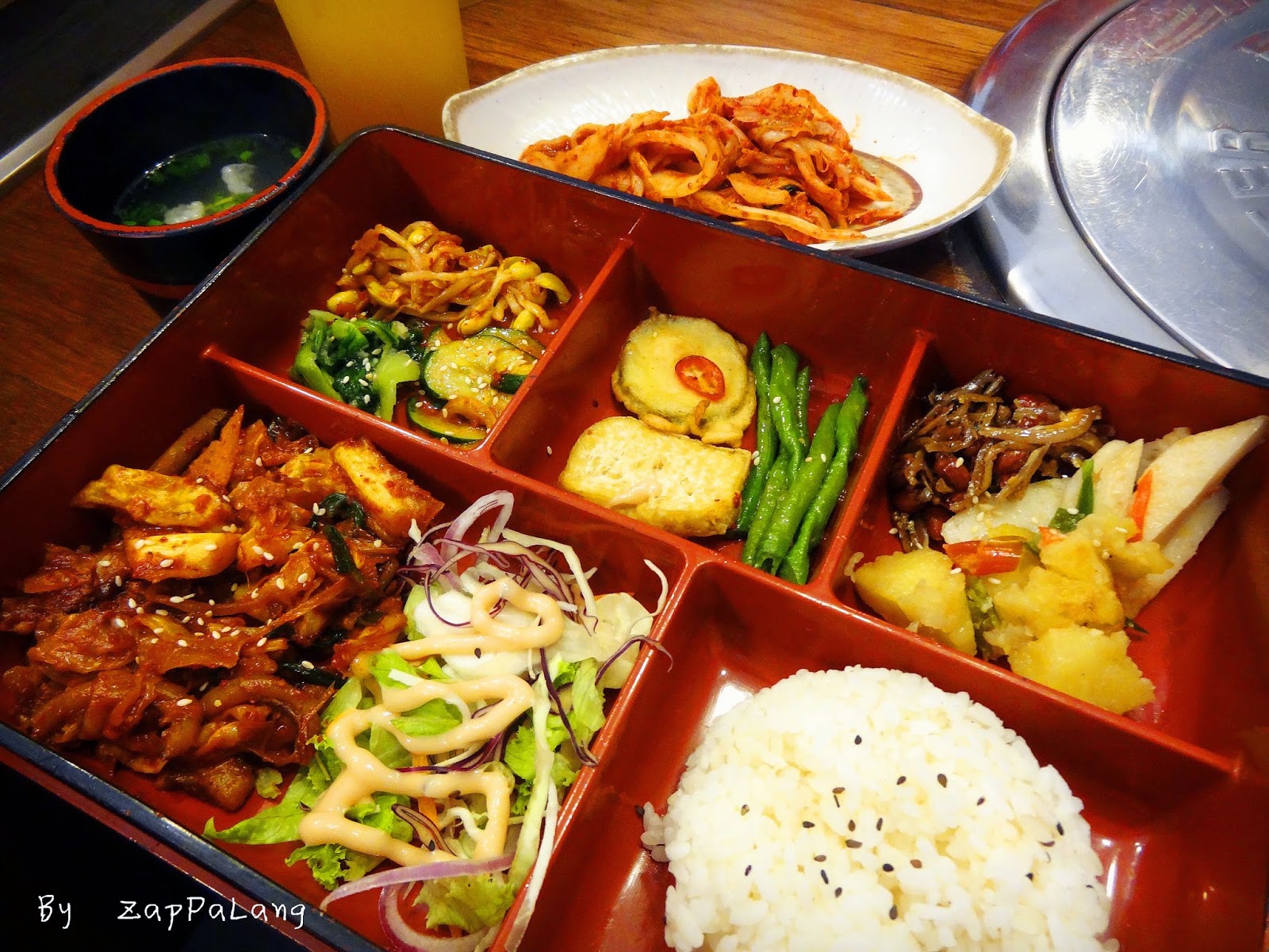 最近 Setiawalk 的韩国餐厅越开越多,而且每一间都那么多人光顾,韩风的影响力真的不容忽视。我一直对韩国餐都没有特别喜好,一来是因为本身不太能吃辣,另一方面也因为心里一直认定韩国餐的价格不便宜。直到这一天经过 Setiawalk 的 San Nae Deul,这里除了韩式烧烤,在中午时分还提供午餐套餐,价格介于RM10-15,随餐附送一杯饮料和热汤,看起来还蛮超值的。