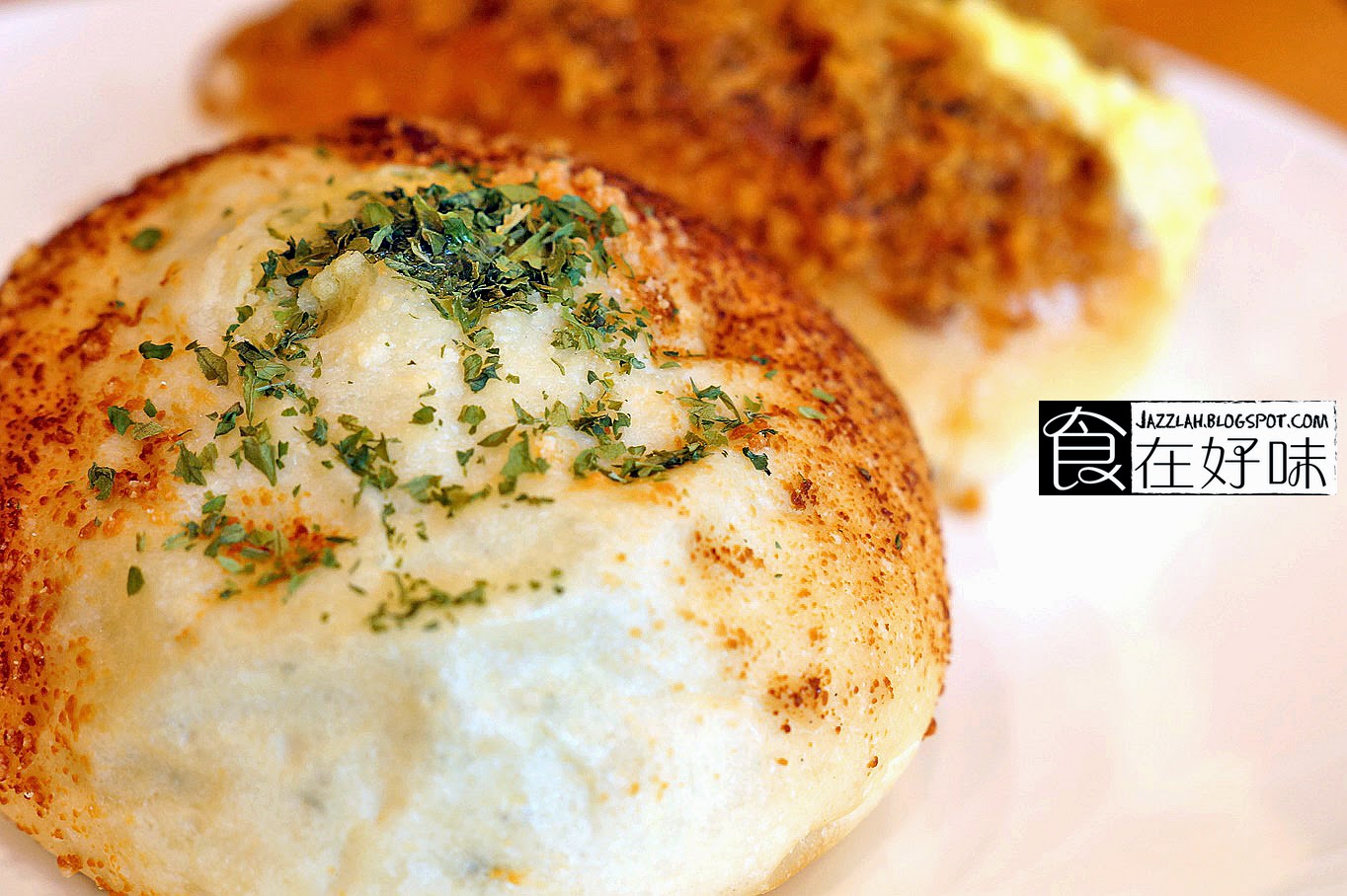 德式蒜香面包 German Garlic Bread【RM3】 在面包厨柜上发现有德式蒜香和法式蒜香两种面包,猜猜看区别在哪里呢? 这款德式蒜香其实犹如马铃薯面包般朴实,没有加入太多的花俏原料 然而在场几位博客都选择德式蒜香为他们最爱的面包之一 究竟其魔力在哪里呢?去Love A Loaf买一粒来试试看,别老是吃日式抹茶麻糬还是杏仁奶油丹麦啦!!
