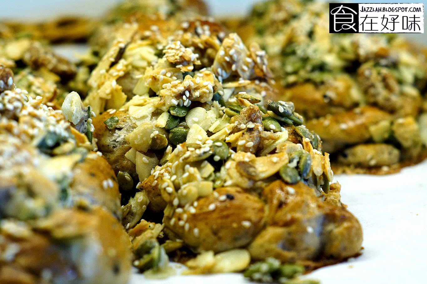 五谷杂粮面包Darkseed Grain Bread【RM3.80】 太健康的好像不怎么适合我,哈哈~ 这面包加入了五谷包括核桃、杏仁、南瓜籽、白芝麻等,口感相当好 不喜欢吃软绵绵面包的朋友可以考虑这款