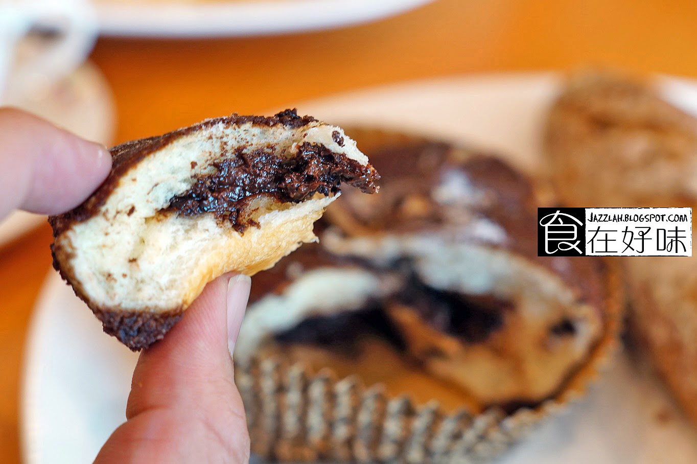 巧克力情人Chocolatine【RM3】 巧克力情人给我的印象嘛...应该是黑黑的、巧克力肤色的那种情人囖,哈哈~ 不过黑黑有时没有什么不好嘛,终于是够Sweet,正所谓“黑金、黑金,越看越入心” 如果喜欢吃甜的朋友,这位黑黑情人巧克力情人就合你口味啦 非常松软的面包裹着一层巧克力面衣,而内陷塞满了巧克力,而且毫不吝啬地给了很多巧克力 吃起来好像涂抹Nutella的面包但又不会来得太甜腻~