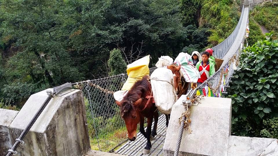 我們8:15AM離開LODGE, 預計到達CHOMRONG! 這天的路程較有難度, 早上都在走較濕的路, 上山下山過吊橋, 有山有水有瀑布, 好風景! 哈哈! 走了兩個小時路過LANDRUK, 大概11AM到達HIMALPANI在那休息和吃午餐!