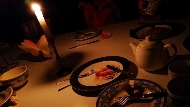 然後休息一下就去DINING ROOM吃晚餐. 還遇到停電! 吃燭光晚餐! 我是吃Momo (水餃)!!