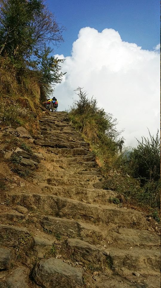 HIMALAYAN過後前往DEULARI的路程, 也不是容易, 大部份都是登石梯級路. 感覺到隨著環境的變化和空氣變薄後, 是比較容易氣喘, 登山走不遠就需要停下休息! 這天的路程給我不斷提醒自己要集中精神頂著走下去!
