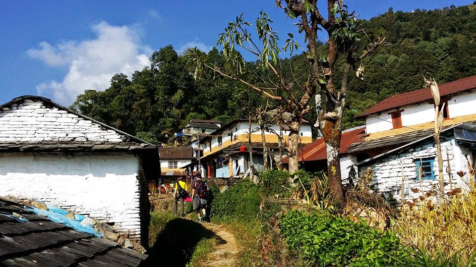 8AM準時出發, CHOMRONG還蠻大的, 從一開始的下山走了一小時都是經過當地人的村庄.