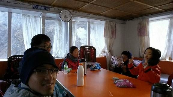 所以我們刷牙洗臉後(請別問洗臉是否很冷, 是真的很冷!), 然後吃完早餐8AM就準時出發! 我們大概9:30AM就到達HIMALAYAN休息站, 在那里又在遇上那幾位馬來西亞的徒步者(他們比我們早出發), 聊了幾句他們又繼續走了.