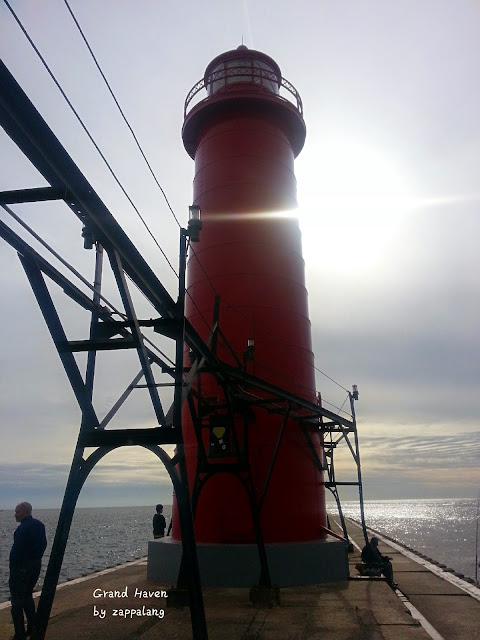 密歇根市是一个被巨湖环绕的城市, 从Grand Haven 这里可以看到那一望无际的巨型淡水湖, 整个就像在海边的感觉, 非常神奇。这里也是游客特别钟爱的地方, 现在是春天还有些冷的天气已经有很多人在这边停泊着露营车了。据问夏天的时候这里想找个停靠的地方也没有的。