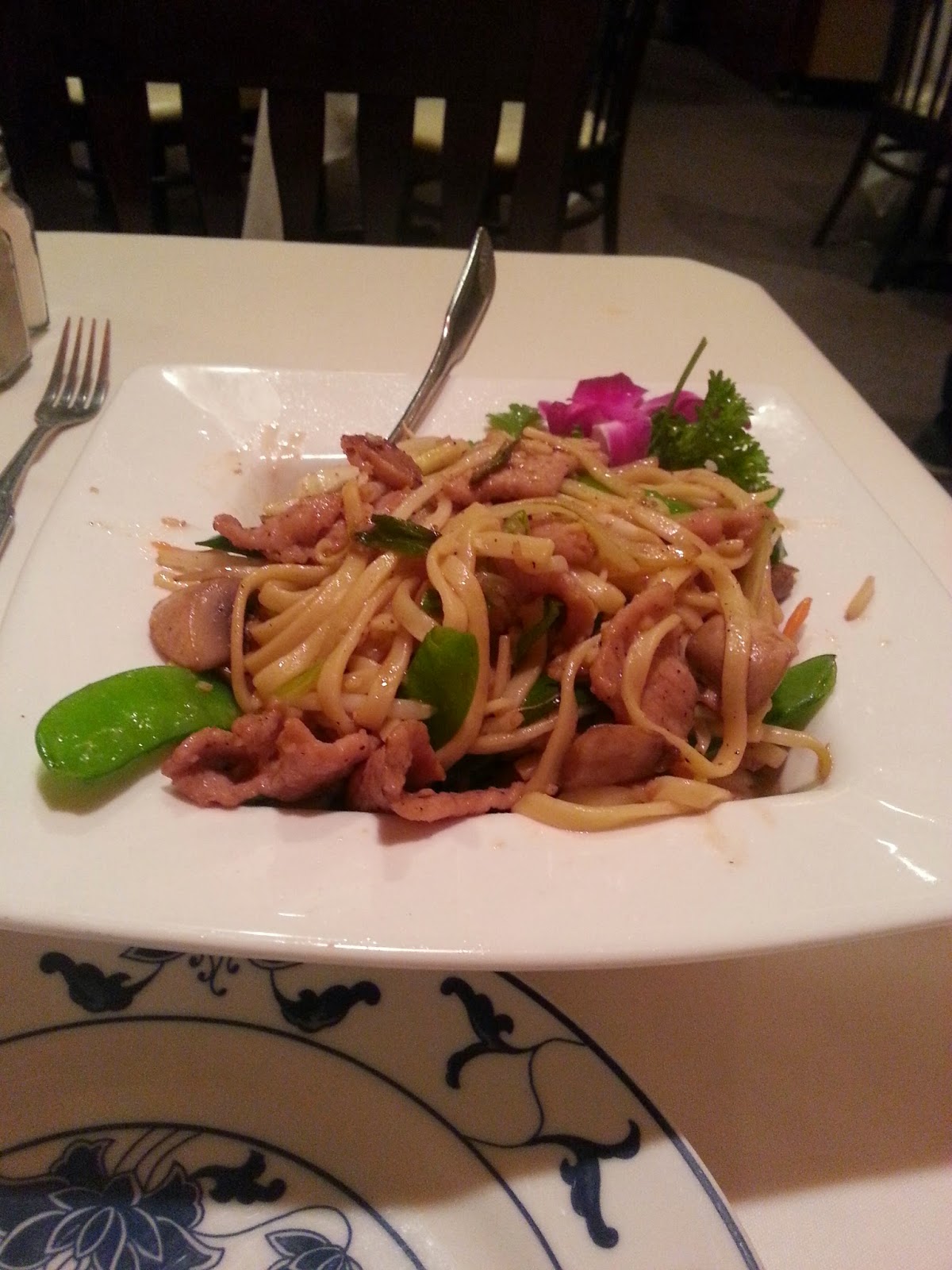 一翻开餐牌,就看到一整排的老外中华料理-柠檬鸡,橙汁鸡,酸甜鸡,左宗棠鸡等等,有点小失望的说。我一向对那些炸鸡块加甜到漏的调味酱没什么兴趣,吃没两口就腻了,所以就点了简单的炒面。