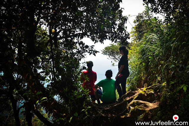 我一点钟抵达山顶(他们十二点多就到了),在这里逗留了差不多一个小时多后,就开始收拾东西准备下山去,而且这里也有很多蚊子,大家都被叮得一包一包的。临走前发现站在这里可以看见远处的云顶高原,让我们三个在那里呆了好一会儿,直到大雾遮盖着视线,我们才依依不舍地离开。