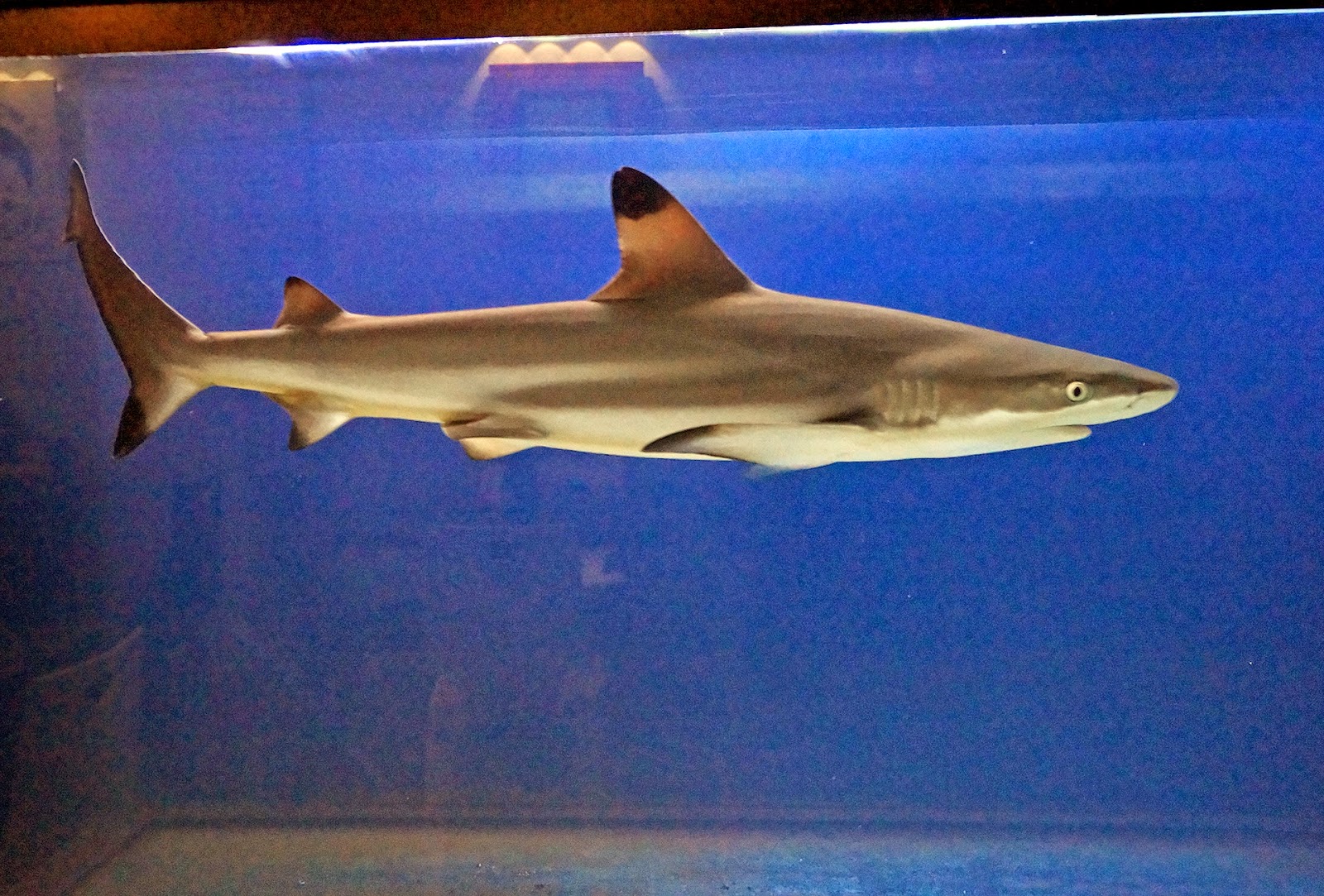 餐厅内还有一只孤独小鲨鱼,鱼缸中除了它之外什么也没有,连跟小草都没有,也好心老板你至少也放根草陪陪它嘛。