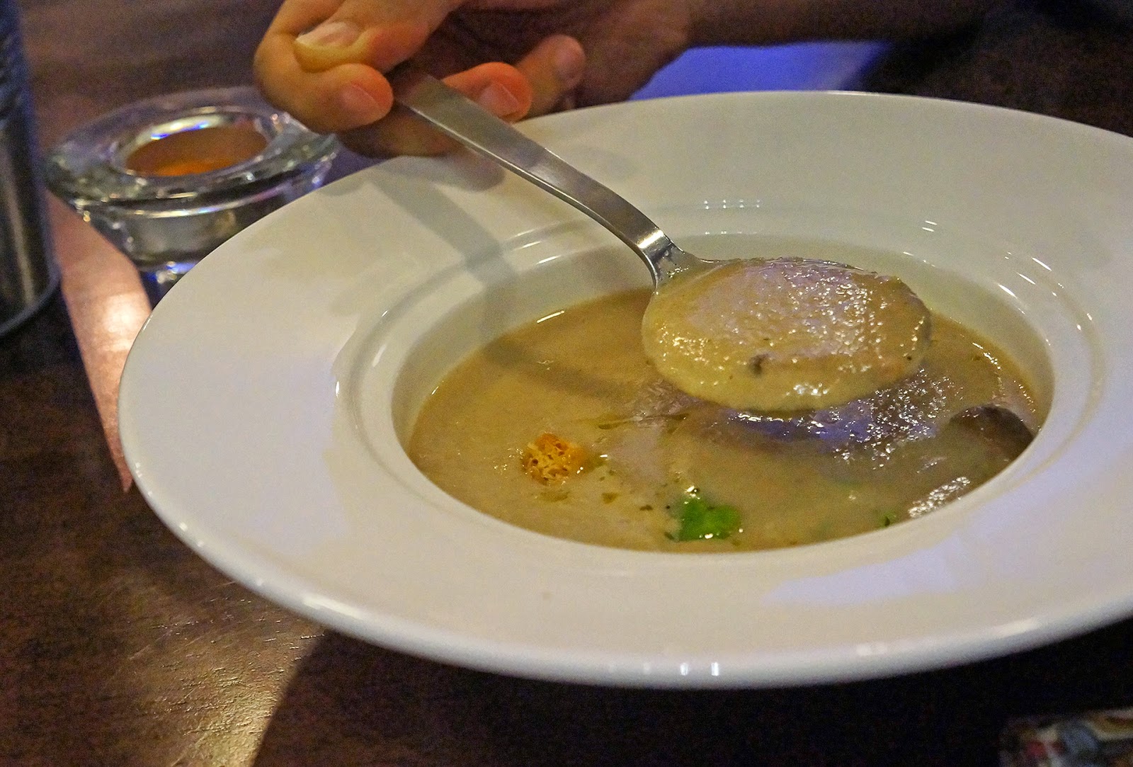前菜的选项有蘑菇汤与绿沙拉。