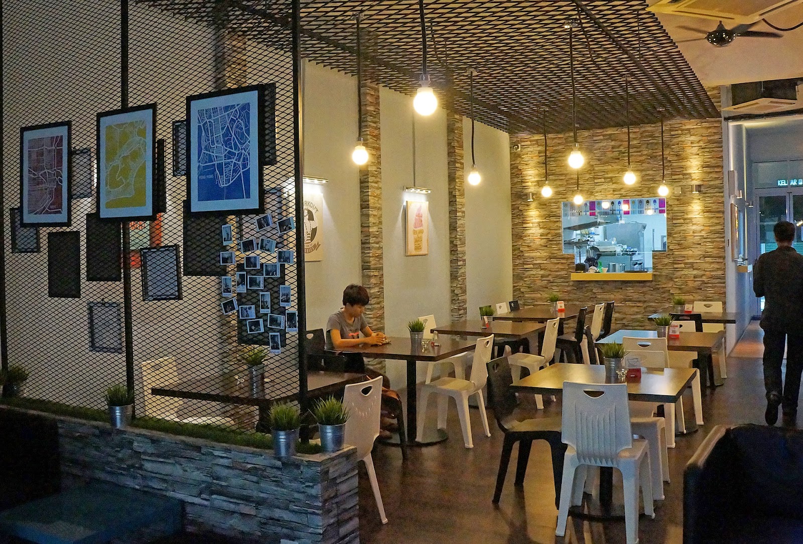 餐厅的装潢年轻时尚,以铁网、石墙和照片为设计主题。半开放式的厨房让我们能从小窗口中偷看那两位年轻的厨师,但同时也让不舒服的油烟渗了出来。