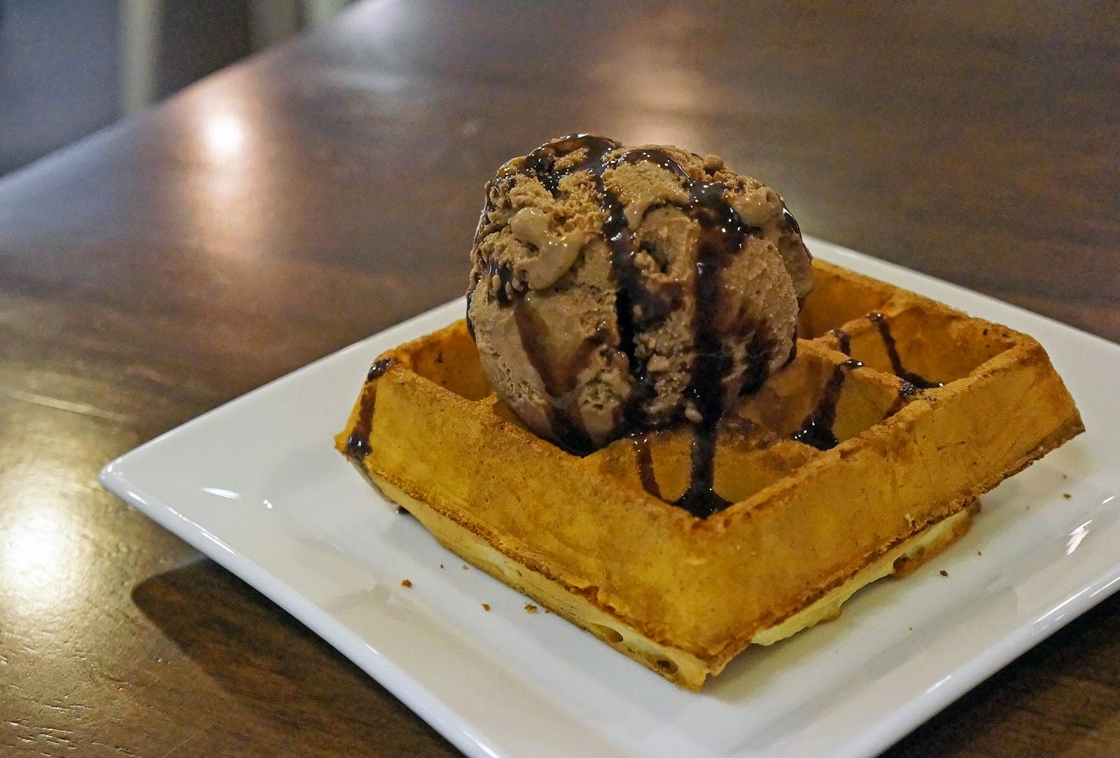 最后上的甜点是一人一个Waffles和一球雪糕。根据资料The Hungry Spoon的雪糕是Rahim自己制作的。雪糕的滋味很好,巧克力的口感绵密,也不会过甜,配着略带咸味的Waffles非常搭。